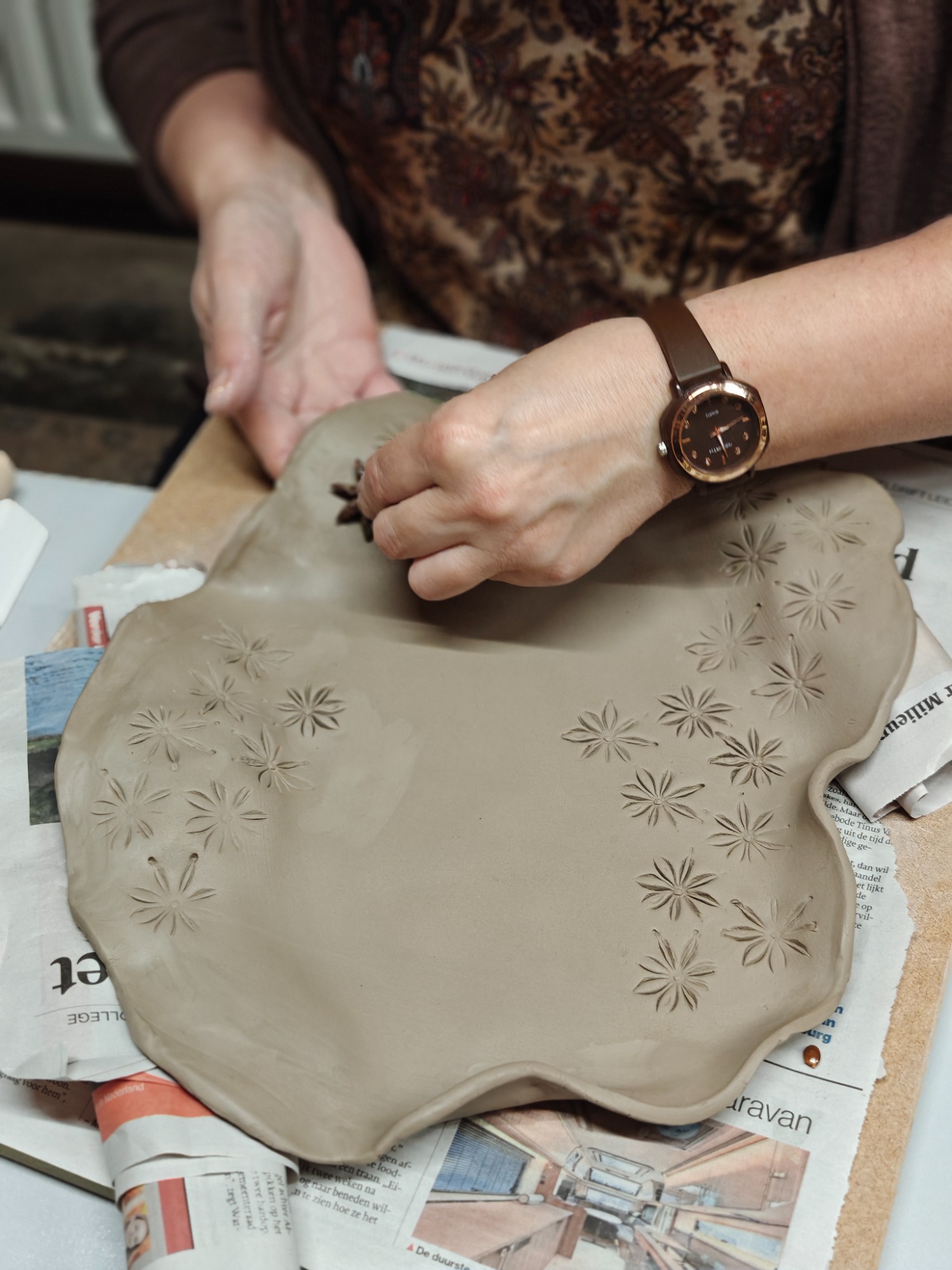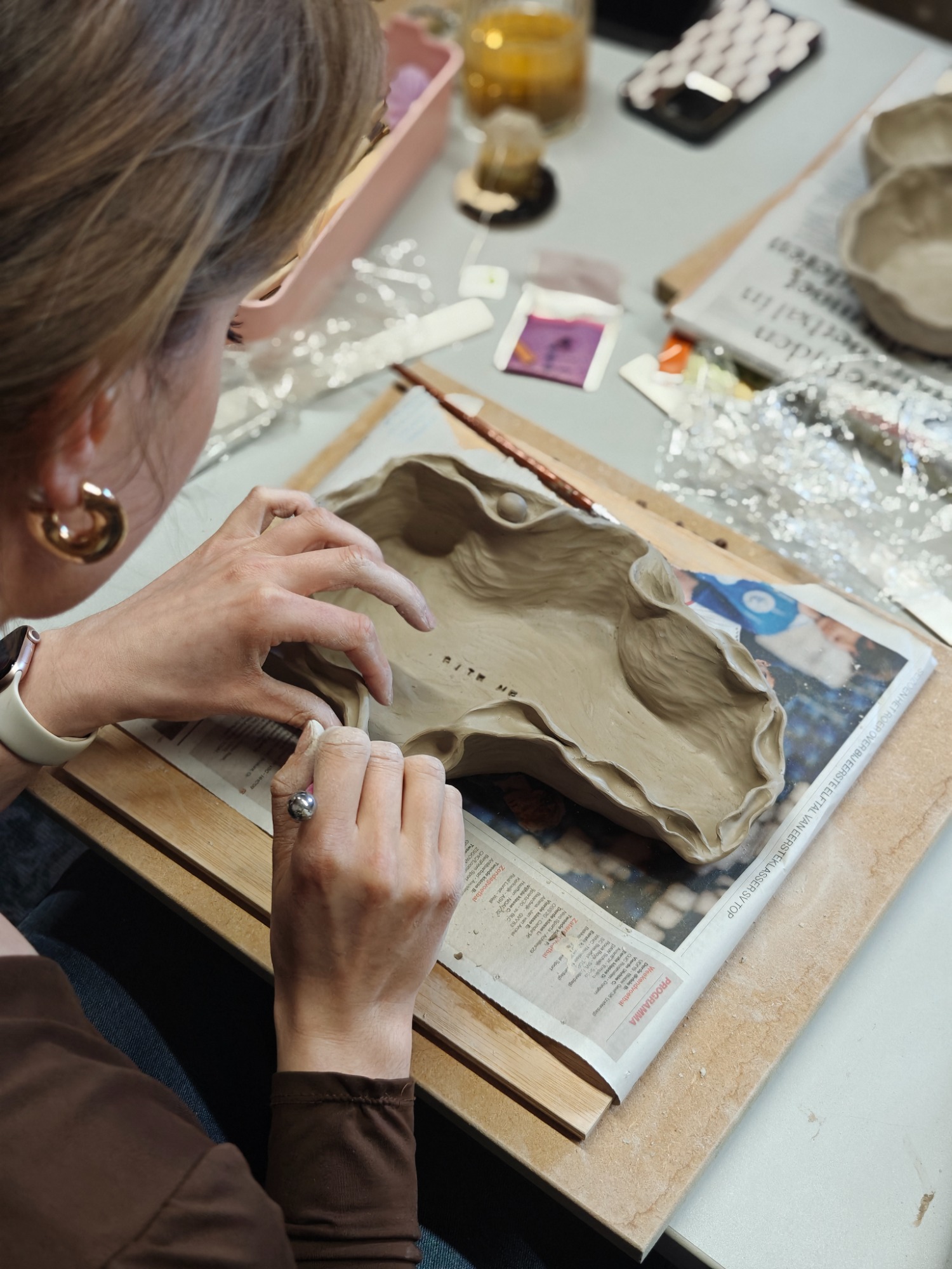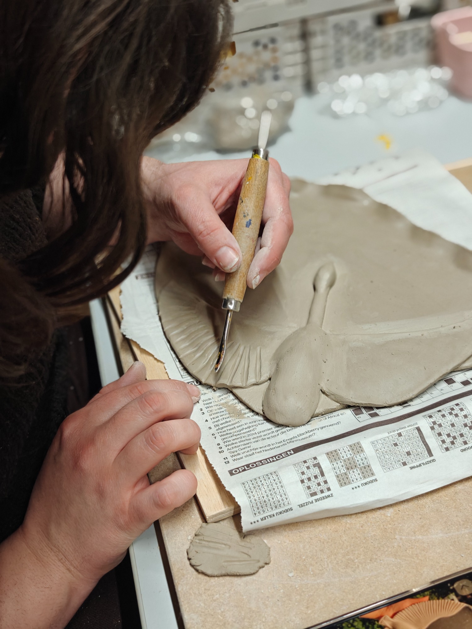 tijdens een workshop keramiek.