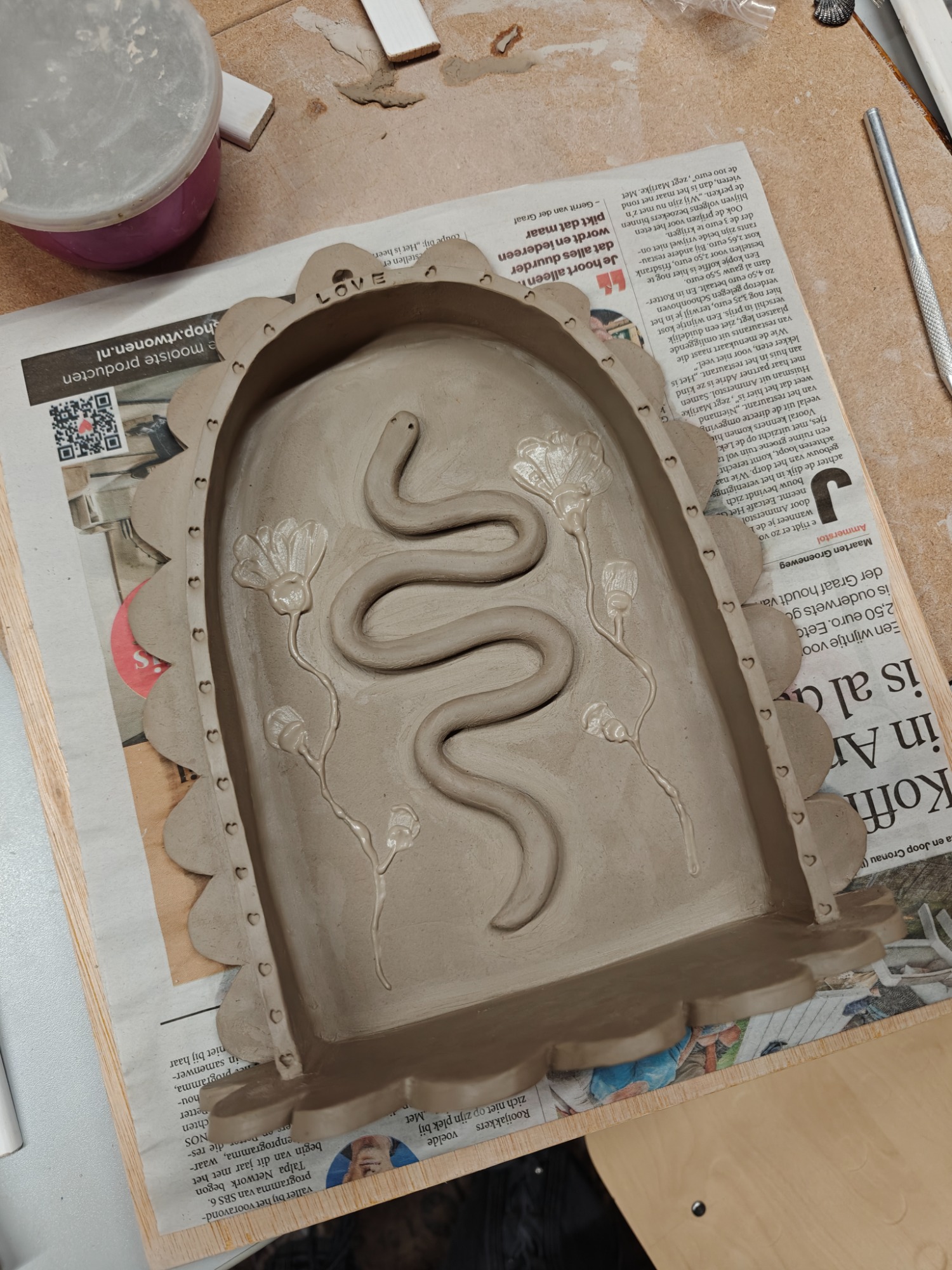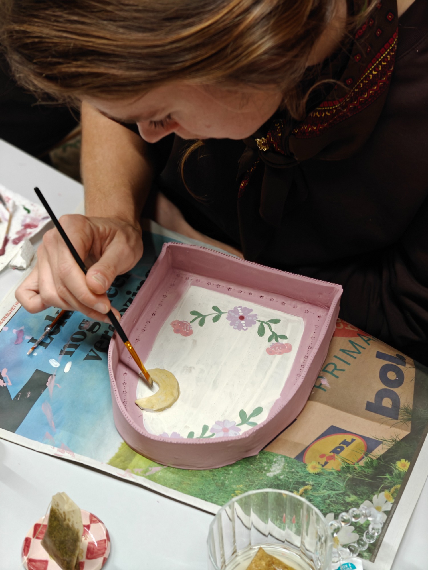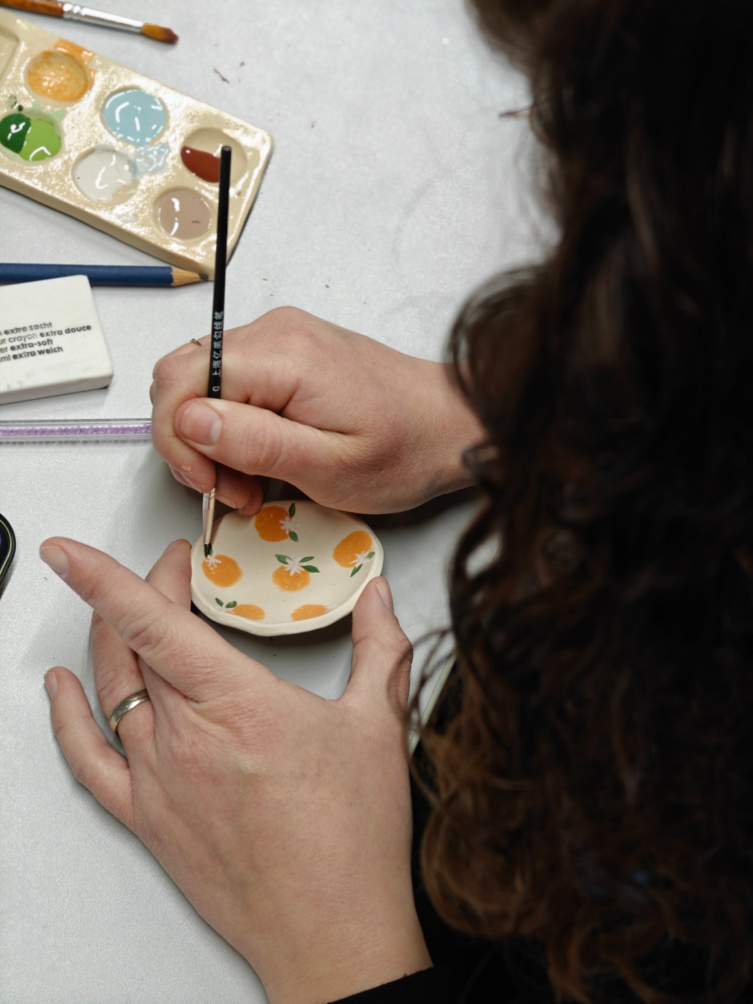tijdens een workshop keramiek.